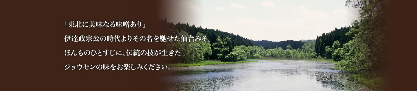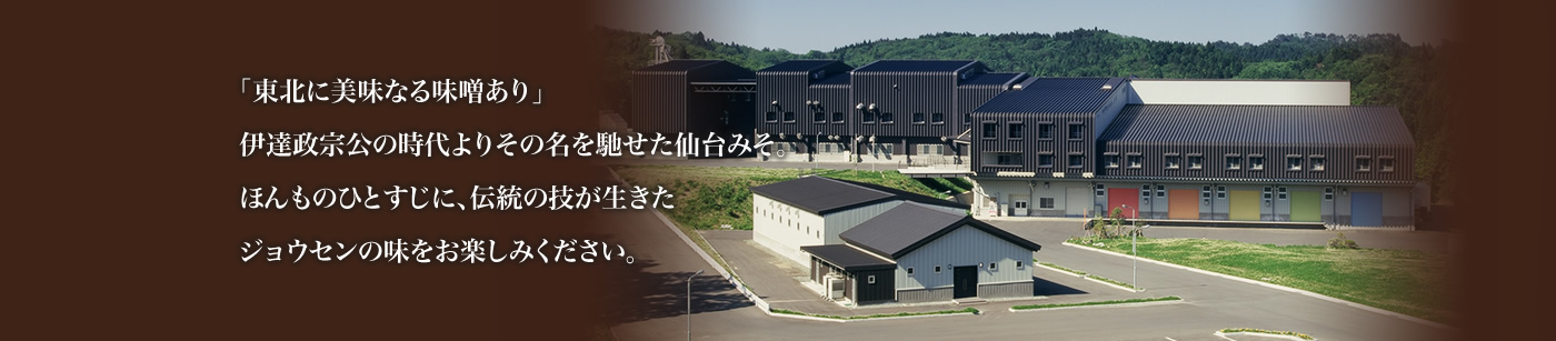 ジョウセンはほんものひとすじ。伊達政宗公の頃よリ受け継がれた伝統の技術と、東北の豊かな風土が生み出す自慢の味、「本場仙台みそ」を皆様にお届けします。